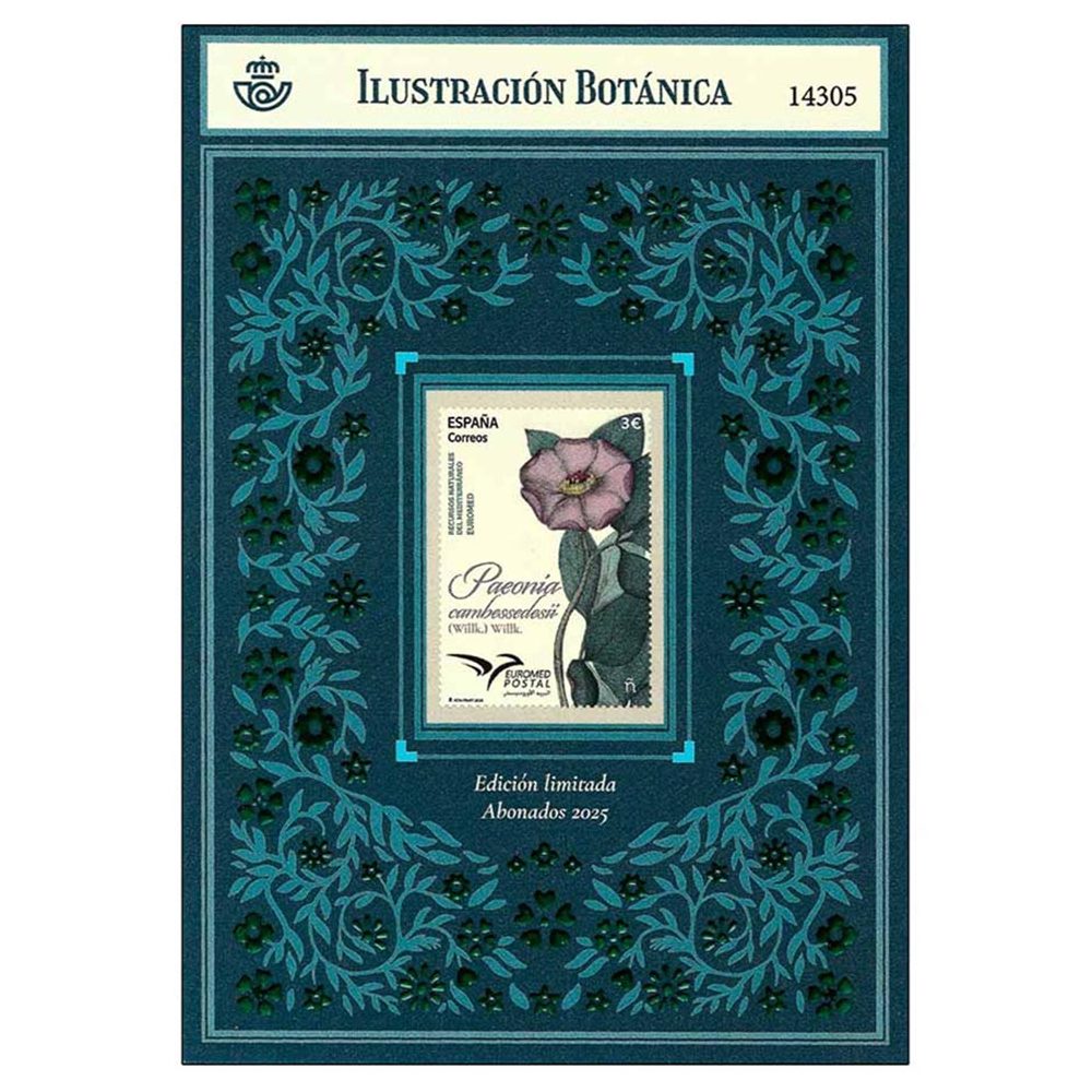 Motivo: Homenaje a la belleza botánica con la imagen de una especie endémica: la Paeonia cambessedesii